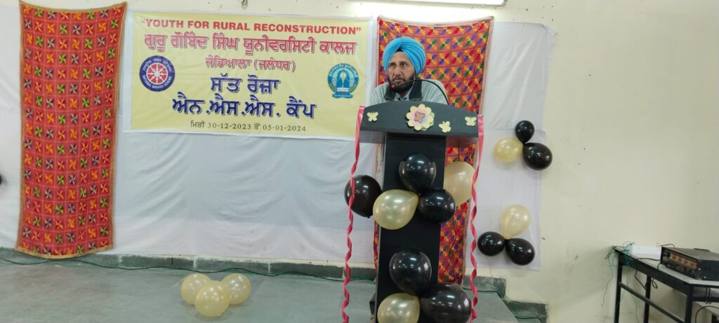 ਗੁਰੂ ਗੋਬਿੰਦ ਸਿੰਘ ਯੂਨੀਵਰਸਿਟੀ ਕਾਲਜ ਜੰਡਿਆਲਾ ਮੰਜਕੀ (ਜਲੰਧਰ) ਵਿਖੇ ਪ੍ਰਿੰਸੀਪਲ ਡਾ. ਸੁਖਵਿੰਦਰ ਸਿੰਘ ਰੰਧਾਵਾ ਦੀ ਰਹਿਨੁਮਾਈ ਅਤੇ ਐਨ.ਐਸ.ਐਸ. ਵਿਭਾਗ ਦੇ ਇੰਚਾਰਜ ਪ੍ਰੋ. ਗੌਰਵ ਸ਼ਰਮਾ ਦੀ ਅਗਵਾਈ ਹੇਠ ਸੱਤ ਰੋਜ਼ਾ ਐਨ. ਐਸ. ਐਸ ਕੈਂਪ 30 ਦਸਬੰਰ ਤੋਂ 05 ਜਨਵਰੀ ਤੱਕ ਲਗਾਇਆ ਗਿਆ ਜੋ ਕਿ ਅੱਜ ਕਾਲਜ ਵਿਖੇ ਸੱਭਿਆਚਾਰਕ ਸਮਾਰੋਹ ਕਰਵਾ ਕੇ ਹਰਸ਼ੋ-ਹੁਲਾਸ ਨਾਲ ਸਮਾਪਤ ਹੋਇਆ। ਇਸ ਮੌਕੇ ਡਾ. ਲਖਵਿੰਦਰ ਸਿੰਘ ਜੋਹਲ, ਪ੍ਰਧਾਨ, ਪੰਜਾਬੀ ਸਾਹਿਤ ਅਕਾਦਮੀ, ਲੁਧਿਆਣਾ ਦੁਆਰਾ ਮੌਜੂਦਾ ਸਰਪੰਚ ਜੰਡਿਆਲਾ ਮੰਜਕੀ (ਜਲੰਧਰ) ਦੁਆਰਾ ਵਿਸ਼ੇਸ਼ ਮਹਿਮਾਨ ਵਜੋਂ ਸ਼ਿਰਕਤ ਕੀਤੀ ਗਈ। ਇਸ ਮੌਕੇ ਪ੍ਰੋ. ਮਨਜੀਤ ਕੌਰ ਦੁਆਰਾ ਆਏ ਹੋਏ ਮਹਿਮਾਨਾ ਨੂੰ ਜੀ ਆਇਆ ਕਿਹਾ ਗਿਆ। ਉਪਰੰਤ ਪ੍ਰੋ. ਹਰਪ੍ਰੀਤ ਸਿੰਘ ਦੁਆਰਾ ਸੱਤ ਰੋਜਾ ਐਨ.ਐਸ.ਐਸ. ਕੈਂਪ ਦੇ ਦੌਰਾਨ ਕਰਵਾਈਆ ਗਈਆ ਗਤੀਵਿਧੀਆਂ ਬਾਰੇ ਸੰਖੇਪ ਜਾਣਕਾਰੀ ਦਿੰਦਿਆ ਕਿਹਾ ਗਿਆ ਕਿ ਐਨ.ਐਸ.ਐਸ. ਕੈਂਪ ਦੇ ਲਈ ਪਿੰਡ ਜੰਡਿਆਲਾ ਮੰਜਕੀ (ਜਲੰਧਰ) ਨੂੰ ਆਡਾਪਟ ਕੀਤਾ ਗਿਆ। ਐਨ.ਐਸ.ਐਸ. ਕੈਂਪ ਦੇ ਦੌਰਾਨ 50 ਤੋਂ ਵੱਧ ਵਿਦਿਆਰਥੀਆਂ ਨੇ ਵੱਧ-ਚੜ੍ਹ ਕੇ ਹਿੱਸਾ ਲਿਆ।