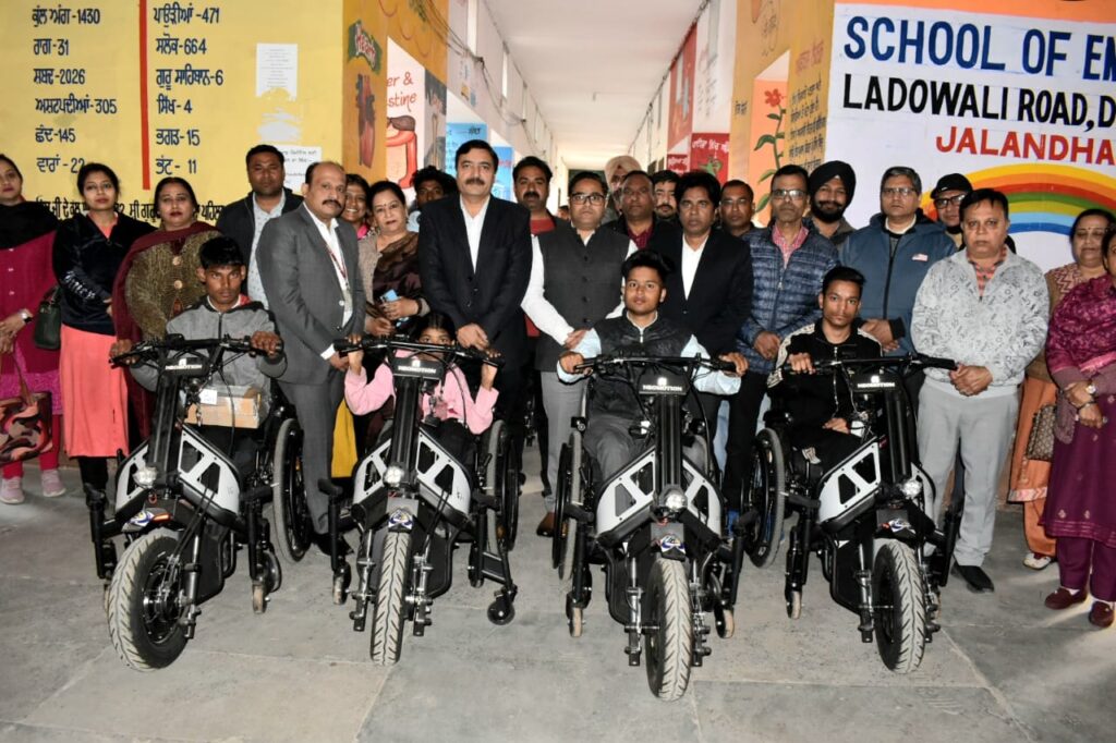 ਜਲੰਧਰ, 5 ਮਾਰਚ 2024-ਡਿਪਟੀ ਕਮਿਸ਼ਨਰ ਵਿਸ਼ੇਸ਼ ਸਾਰੰਗਲ ਵੱਲੋਂ ਅੱਜ ਵਿਸ਼ੇਸ਼ ਲੋੜਾਂ ਵਾਲੇ 11 ਵਿਦਿਆਰਥੀਆਂ ਨੂੰ ਇਲੈਕਟ੍ਰਿਕ ਵ੍ਹੀਲਚੇਅਰ-ਕਮ-ਸਕੂਟਰ ਵੰਡੇ ਗਏ।