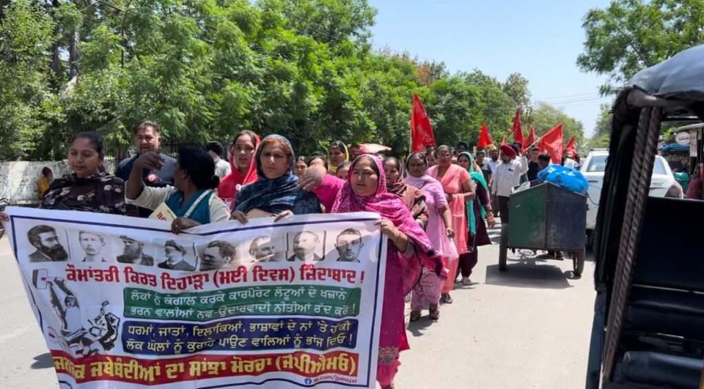 ਫਿਲੌਰ, 1 ਮਈ 2024- ਅੱਜ ਇਥੇ ਸ਼ਿਕਾਗੋ ਦੀ ਸ਼ਹੀਦਾਂ ਦੀ ਯਾਦ ਕਰਦਿਆਂ ਮਈ ਦਿਵਸ ਮਨਾਇਆ ਗਿਆ। ਜਨਤਕ ਜਥੇਬੰਦੀਆਂ ਦੇ ਸਾਂਝੇ ਮੋਰਚੇ (ਜੇਪੀਐੱਮਓ) ਵਲੋਂ ਸਥਾਨਕ ਨਵਾਂ ਸ਼ਹਿਰ ਰੋਡ ‘ਤੇ ਇਕੱਠੇ ਹੋ ਕੇ ਮਈ ਦਿਵਸ ਦੇ ਸ਼ਹੀਦਾਂ ਨੂੰ ਯਾਦ ਕੀਤਾ ਗਿਆ। ਇਸ ਮੌਕੇ ਆਗੂਆਂ ਨੇ ਕਿਹਾ ਕਿ ਦੇਸ਼ ਦੇ ਹਾਕਮਾਂ ਵਲੋਂ ਅੱਠ ਘੰਟੇ ਦੀ ਦਿਹਾੜੀ ਤੋਂ ਬਾਰਾਂ ਘੰਟੇ ਦੀ ਦਿਹਾੜੀ ਕਰਨਾ ਹੀ ਮਜ਼ਦੂਰ ਵਿਰੋਧੀ ਕਦਮ ਹੈ। ਮੌਜੂਦਾ ਸਰਕਾਰ ਵਲੋਂ ਲਗਾਤਾਰ ਮਜ਼ਦੂਰਾਂ ‘ਤੇ ਹਮਲੇ ਕੀਤੇ ਜਾ ਰਹੇ ਹਨ, ਹਰ ਕੰਮ ਕਿੱਤੇ ਦੀ ਧਰਮ ਦੇ ਅਧਾਰਿਤ ਵੰਡ ਪਾ ਕੇ ਲੋਕਾਂ ਨੂੰ ਆਪਸ ‘ਚ ਲੜਾਇਆ ਜਾ ਰਿਹਾ ਹੈ।