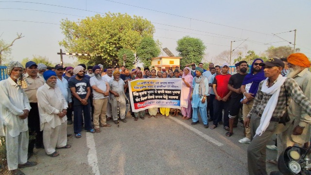 ਕੈਪਸ਼ਨ- ਫਾਟਕ ਨੇੜੇ ਨਾਅਰੇਬਾਜ਼ੀ ਕਰਦੇ ਪਿੰਡ ਵਾਸੀ।