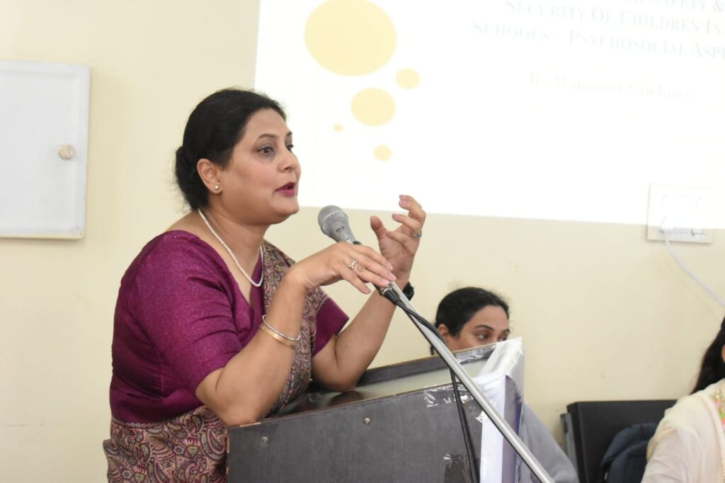 ਉਪਰੰਤ ਰਾਸ਼ਟਰੀ ਬਾਲ ਅਧਿਕਾਰ ਸੁਰੱਖਿਆ ਕਮਿਸ਼ਨ ਦੀ ਪ੍ਰਤੀਨਿਧੀ ਮਨਮੀਤ ਕੌਰ ਸਾਹਨੀ ਨੇ ਸਕੂਲ ਸੁਰੱਖਿਆ ਦੇ ਮਨੋਵਿਗਿਆਨਕ ਸਮਾਜਿਕ ਪਹਿਲੂ ਸਮੇਤ ਸਕੂਲਾਂ ਵਿੱਚ ਬੱਚਿਆਂ ਦੀ ਸੁਰੱਖਿਆ ਸਬੰਧੀ ਐਨ.ਸੀ.ਪੀ.ਸੀ.ਆਰ. ਵੱਲੋਂ ਤਿਆਰ ਮੈਨੂਅਲ ਬਾਰੇ ਵਿਸਥਾਰ ਨਾਲ ਜਾਣਕਾਰੀ ਦਿੱਤੀ ਗਈ। ਉਨ੍ਹਾਂ ਦੱਸਿਆ ਕਿ ਇਸ ਵਰਕਸ਼ਾਪ ਦਾ ਮੰਤਵ ਬੱਚਿਆਂ ਨੂੰ ਸਾਈਬਰ ਖਤਰਿਆਂ ਤੋਂ ਸੁਰੱਖਿਅਤ ਰੱਖਣ ਲਈ ਸਕੂਲਾਂ ਦੀ ਜ਼ਿੰਮੇਵਾਰੀ ਸਬੰਧੀ ਜਾਗਰੂਕਤਾ ਪੈਦਾ ਵੀ ਕਰਨਾ ਹੈ। ਉਨ੍ਹਾਂ ਜ਼ੋਰ ਦਿੰਦਿਆਂ ਕਿਹਾ ਕਿ ਅੱਜ ਦੇ ਸਮੇਂ ਵਿੱਚ ਜਦੋਂ ਬੱਚੇ ਇੰਟਰਨੈੱਟ, ਸੋਸ਼ਲ ਮੀਡੀਆ ’ਤੇ ਜ਼ਿਆਦਾ ਸਮਾਂ ਗੁਜ਼ਾਰਨ ਲੱਗ ਗਏ ਹਨ ਤਾਂ ਅਜਿਹੇ ਵਿੱਚ ਉਨ੍ਹਾਂ ਦੀ ਸਾਈਬਰ ਸੁਰੱਖਿਆ ਬਹੁਤ ਜ਼ਰੂਰੀ ਹੈ।