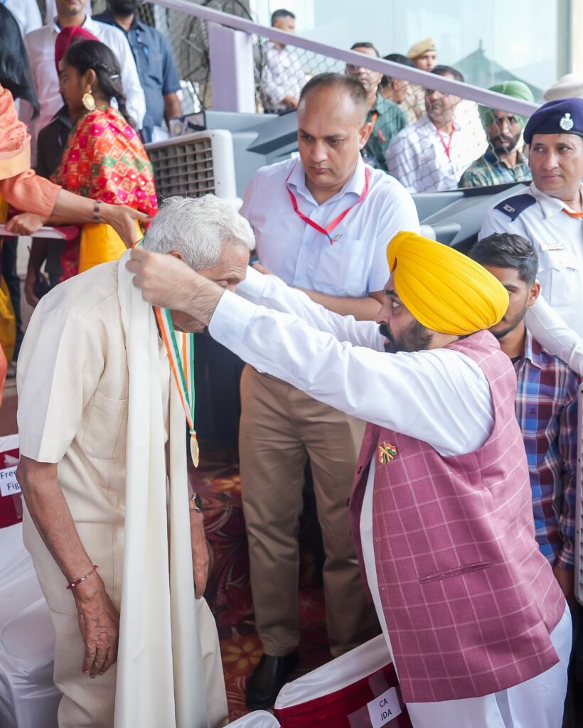 ਮੁੱਖ ਮੰਤਰੀ ਨੇ ਦੋ ਆਜ਼ਾਦੀ ਘੁਲਾਟੀਆਂ ਪ੍ਰੇਮ ਸਾਗਰ ਅਤੇ ਦੇਵ ਵਰਤ ਸ਼ਰਮਾ ਤੋਂ ਇਲਾਵਾ ਸ਼ਹੀਦ ਸੈਨਿਕਾਂ ਦੇ ਪਰਿਵਾਰਕ ਮੈਂਬਰਾਂ ਨੂੰ ਸਨਮਾਨਿਤ ਕੀਤਾ। ਮੁੱਖ ਮੰਤਰੀ ਨੇ ਲੋੜਵੰਦ ਔਰਤਾਂ ਨੂੰ ਸਿਲਾਈ ਮਸ਼ੀਨਾਂ ਤੇ ਦਿਵਿਆਂਗ ਵਿਅਕਤੀਆਂ ਨੂੰ ਟਰਾਈ ਸਾਈਕਲ ਵੀ ਵੰਡੇ।