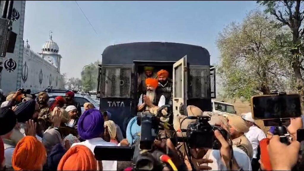 ਭਾਈ ਬਲਵੰਤ ਸਿੰਘ ਰਾਜੋਆਣਾ ਜਿਹਨਾਂ ਨੂੰ ਹਾਈਕੋਰਟ ਵੱਲੋ ਅੱਜ 3 ਘੰਟੇ ਲਈ ਮਿਲੀ ਪੈਰੋਲ ਤਹਿਤ ਰਾਜੋਆਣਾ ਜੇਲ੍ਹ ਤੋਂ ਪਿੰਡ ਰਾਜੋਆਣਾ ਵਿਖੇ ਪੁੱਜੇ।