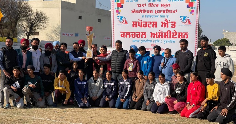 ਨੂਰਮਹਿਲ ਵੱਲੋਂ ਕਰਵਾਈ ਗਈ ਜ਼ਿਲ੍ਹਾ ਪੱਧਰੀ ਚੈਂਪੀਅਨਸ਼ਿਪ ‘ਚ ਲਗਾਤਾਰ 13ਵੀਂ ਵਾਰ ਓਵਰਆਲ ਟਰਾਫ਼ੀ ‘ਤੇ ਕਬਜ਼ਾ ਕੀਤਾ | ਇਸ ਮੌਕੇ ਸਕੂਲ ਦੇ ਪ੍ਰਿੰਸੀਪਲ ਸ੍ਰੀ ਸੰਜੀਵ ਗੁਜਰਾਲ ਨੇ ਦੱਸਿਆ ਕਿ ਓਵਰਆਲ ਟਰਾਫ਼ੀ ਦੇ ਨਾਲ-ਨਾਲ ਸਕੂਲ ਦੇ 3 ਵਿਦਿਆਰਥੀਆਂ ਨੇ ਆਪੋ-ਆਪਣੇ ਵਰਗ ‘ਚ ਬੈਸਟ ਐਥਲੀਟ ਦਾ ਐਵਾਰਡ ਵੀ ਹਾਸਲ ਕੀਤਾ | ਉਨ੍ਹਾਂ ਕਿਹਾ ਕਿ ਨੌਜਵਾਨ ਖਿਡਾਰੀਆਂ ਨੂੰ ਖੇਡਾਂ ਪ੍ਰਤੀ ਪ੍ਰੇਰਿਤ ਕਰਨਾ ਸਮੇਂ ਦੀ ਮੁੱਖ ਲੋੜ ਹੈ। ਵਿਦਿਆਰਥੀ ਸਕੂਲ ਵਿੱਚ ਹੀ ਰਾਸ਼ਟਰੀ ਅਤੇ ਅੰਤਰਰਾਸ਼ਟਰੀ ਖੇਡਾਂ ਜਿੱਤਣ ਦੀ ਨੀਂਹ ਰੱਖਦੇ ਹਨ। ਇਸ ਲਈ ਵਿਦਿਆਰਥੀਆਂ ਨੂੰ ਸਕੂਲ ਵਿੱਚ ਹੀ ਖੇਡਣ ਦੇ ਵੱਧ ਤੋਂ ਵੱਧ ਮੌਕੇ ਮਿਲਣੇ ਚਾਹੀਦੇ ਹਨ। ਉਨ੍ਹਾਂ ਇਸ ਖੇਡ ਮੁਕਾਬਲੇ ਦੇ ਆਯੋਜਨ ਲਈ ਸਕੈਨ ਹੈੱਡ ਆਰ.ਐਸ.ਹੁੰਦਲ ਅਤੇ ਉਨ੍ਹਾਂ ਦੀ ਸਮੁੱਚੀ ਟੀਮ ਦਾ ਧੰਨਵਾਦ ਕੀਤਾ।