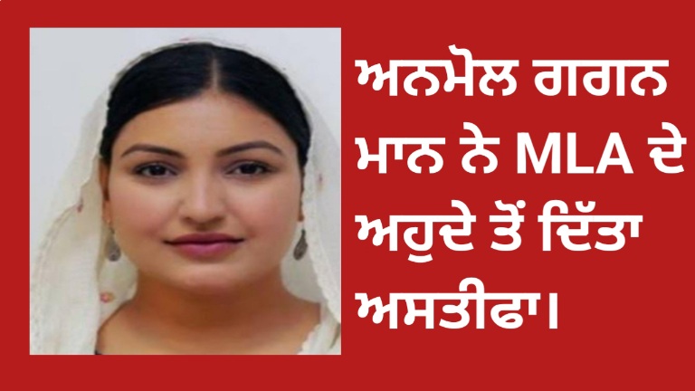 ਅਨਮੋਲ ਗਗਨ ਮਾਨ ਵੱਲੋ ਐਮ ਐਲ ਏ ਦੇ ਅਹੁਦੇ ਤੋਂ ਦਿੱਤਾ ਅਸਤੀਫ਼ਾ