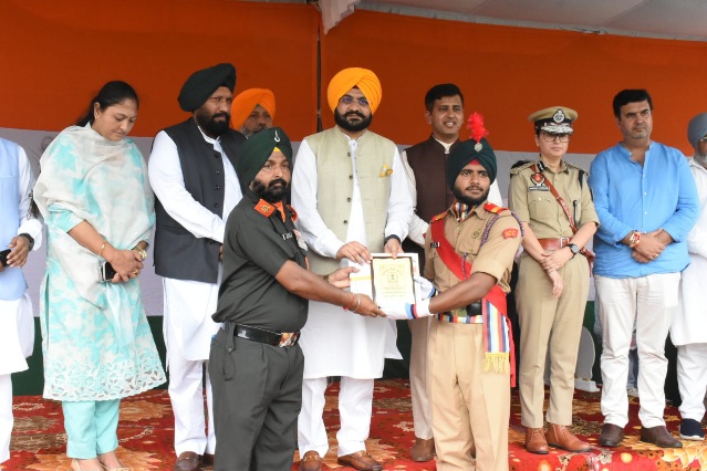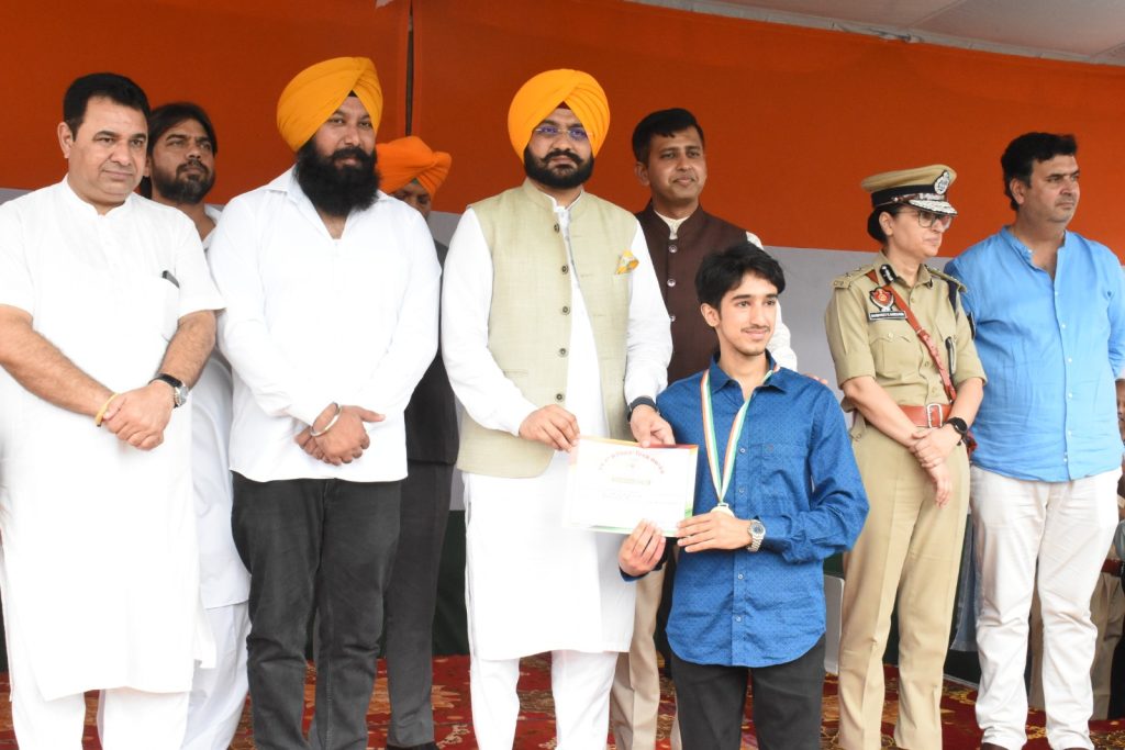 ਜਲੰਧਰ, 15 ਅਗਸਤ 2025 :- 79ਵੇਂ ਆਜ਼ਾਦੀ ਦਿਹਾੜੇ ਮੌਕੇ ਅੱਜ ਇਥੇ ਗੁਰੂ ਗੋਬਿੰਦ ਸਿੰਘ ਸਟੇਡੀਅਮ ਵਿਖੇ ਜ਼ਿਲ੍ਹਾ ਪੱਧਰੀ ਸਮਾਗਮ ਦੌਰਾਨ ਪੰਜਾਬ ਦੇ ਸੈਰ ਸਪਾਟਾ ਤੇ ਸੱਭਿਆਚਾਰਕ ਮਾਮਲੇ, ਕਿਰਤ ਪ੍ਰਾਹੁਣਚਾਰੀ ਅਤੇ ਪੇਂਡੂ ਵਿਕਾਸ ਤੇ ਪੰਚਾਇਤਾਂ ਮੰਤਰੀ ਤਰੁਨਪ੍ਰੀਤ ਸਿੰਘ ਸੌਂਦ ਵੱਲੋਂ ਵੱਖ-ਵੱਖ ਖੇਤਰਾਂ ਵਿੱਚ ਸ਼ਾਨਦਾਰ ਕਾਰਗੁਜ਼ਾਰੀ ਦਿਖਾਉਣ ਵਾਲੀਆਂ 138 ਸ਼ਖ਼ਸੀਅਤਾਂ ਦਾ ਪ੍ਰਸ਼ੰਸਾ ਪੱਤਰਾਂ ਨਾਲ ਸਨਮਾਨ ਕੀਤਾ ਗਿਆ।