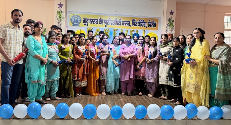 ਅੱਜ 15 ਅਪ੍ਰੈਲ, 2026 ਨੂੰ ਗੁਰੂ ਨਾਨਕ ਦੇਵ ਯੂਨੀਵਰਸਿਟੀ ਕਾਲਜ, ਫਿਲੌਰ ਵਿੱਚ ਪ੍ਰਿੰਸੀਪਲ ਡਾ. ਰਾਜਵਿੰਦਰ ਕੌਰ ਹੁੰਦਲ ਜੀ ਦੀ ਅਗਵਾਈ ਅਤੇ ਸਮੂਹ ਸਟਾਫ ਦੇ ਸਹਿਯੋਗ ਨਾਲ ਆਰਟਸ ਵਿਭਾਗ ਦੇ ਵਿਦਿਆਰਥੀਆਂ ਨੂੰ ਵਿਦਾਇਗੀ ਪਾਰਟੀ ਦਿੱਤੀ ਗਈ| ਇਸ ਮੌਕੇ ਪ੍ਰਿੰਸੀਪਲ ਮੈਡਮ ਅਤੇ ਸਮੂਹ ਸਟਾਫ ਦੁਆਰਾ ਸ਼ਮਾਂਦਾਨ ਰੌਸ਼ਨ ਕੀਤੀ ਗਈ| ਪ੍ਰੋ. ਵਿਸ਼ਾਲੀ ਪਸਰੀਚਾ ਵੱਲੋਂ ਵਿਦਿਆਰਥੀਆਂ ਨੂੰ ਸ਼ੁੱਭਕਾਮਨਾਵਾਂ ਦਿੱਤੀਆਂ ਗਈਆਂ| ਵਿਦਿਆਰਥੀਆਂ ਨੇ ਬੜੇ ਹੀ ਉਤਸ਼ਾਹ ਨਾਲ ਵੱਖ-ਵੱਖ ਸੱਭਿਆਚਾਰਕ ਵੰਨਗੀਆਂ ਜਿਵੇਂ ਕਿ ਮੌਡਲਿੰਗ, ਡਾਂਸ, ਮਨੌਰੰਜਕ ਖੇਡਾਂ, ਯਾਦਗਾਰੀ ਪੀ.ਪੀ.ਟੀ ਅਤੇ ਮਿਊਜੀਕਲ ਚੇਅਰ ਰਾਹੀਂ ਆਪਣੀਆਂ ਭਾਵਨਾਵਾਂ ਪੇਸ਼ ਕੀਤੀਆਂ| ਜੱਜ ਸਹਿਬਾਨਾਂ ਦੁਆਰਾ ਪ੍ਰਿੰਸ ਰਾਏ ਨੂੰ ਮਿਸਟਰ ਫੇਅਰਵੈਲ ਅਤੇ ਸਕੀਨਾ ਨੂੰ ਮਿਸ ਫੇਅਰਵੈਲ ਅਤੇ ਸੌਰਵ ਨੂੰ ਮਿਸਟਰ ਵੈੱਲ ਡਰੈੱਸ ਅਤੇ ਨਿਸ਼ੂ ਨੂੰ ਮਿਸ ਵੈੱਲ ਡਰੈੱਸ ਚੁਣਿਆ ਗਿਆ| ਇਸ ਮੌਕੇ ਮੈਡਮ ਓ.ਐੱਸ.ਡੀ. ਨੇ ਵਿਦਿਆਰਥੀਆਂ ਨੂੰ ਭਾਵਨਾਤਮਕ ਅਤੇ ਪ੍ਰੇਰਨਾਮਈ ਭਾਸ਼ਣ ਦਿੰਦਿਆਂ ਵਿਦਿਆਰਥੀਆਂ ਨੂੰ ਸੰਬੋਧਨ ਕੀਤਾ ਕਿ ਤੁਸੀਂ ਆਉਣ ਵਾਲੇ ਭਵਿੱਖ ਵਿੱਚ ਐਨੇ ਕਾਮਯਾਬ ਬਣੋ ਕਿ ਜਿੱਥੇ ਅੱਜ ਤੁਸੀਂ ਇੱਕ ਵਿਦਿਆਰਥੀ ਬਣਕੇ ਬੈਠੇ ਹੋ ਉਥੇ ਮੁੱਖ ਮਹਿਮਾਨ ਬਣਕੇ ਬੈਠੋ| ਅੱਜ ਕਾਲਜ ਦੇ ਇਤਿਹਾਸ ਵਿੱਚ ਪਹਿਲੀ ਵਾਰ ਜਾ ਰਹੇ ਵਿਦਿਆਰਥੀਆਂ ਦੀਆਂ ਯਾਦਾਂ ਨੂੰ ਤਾਜਾ ਰੱਖਣ ਲਈ ਗਰੁੱਪ ਫੋਟੇ ਵੀ ਕਰਵਾਈ ਗਈ| ਪ੍ਰੋਗਰਾਮ ਇੰਚਾਰਜ ਡਾ. ਪਰਮਜੀਤ ਕੌਰ ਅਤੇ ਸਮੂਹ ਸਟਾਫ ਨੇ ਬੜੇ ਹੀ ਉਤਸ਼ਾਹ ਨਾਲ ਪ੍ਰੋਗਰਾਮ ਵਿੱਚ ਹਿੱਸਾ ਲਿਆ| ਸਟਾਫ ਅਤੇ ਵਿਦਿਆਰਥੀਆਂ ਲਈ ਦੁਪਹਿਰ ਦੇ ਖਾਣੇ ਦਾ ਪ੍ਰਬੰਧ ਵੀ ਕੀਤਾ ਗਿਆ|